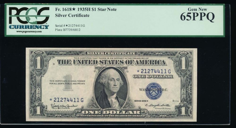 One 1935H $1 Silver Certificate Star Note PCGS 65PPQ.