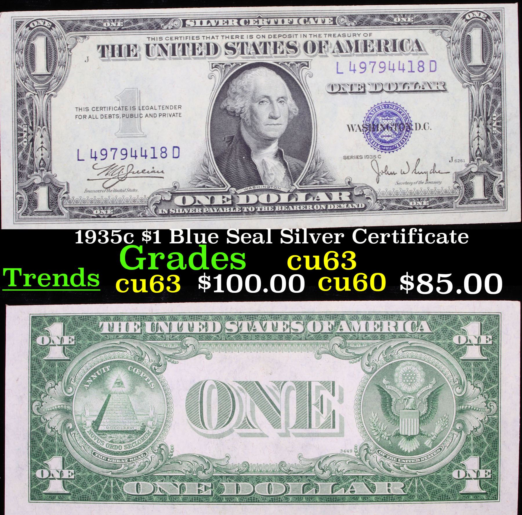 1935c $1 Blue Seal Silver Certificate Grades Select CU.