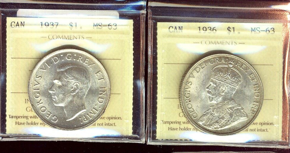 1936 $1 & 1937 ICCS MS63. Lot of 2 coins.