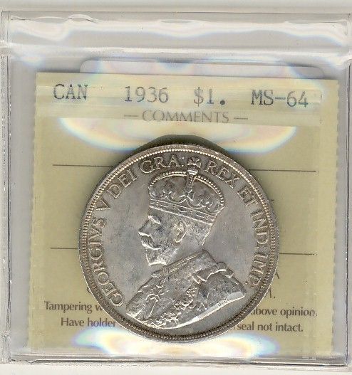 1936 1 Dollars, ICCS MS64. Lustrous coin.