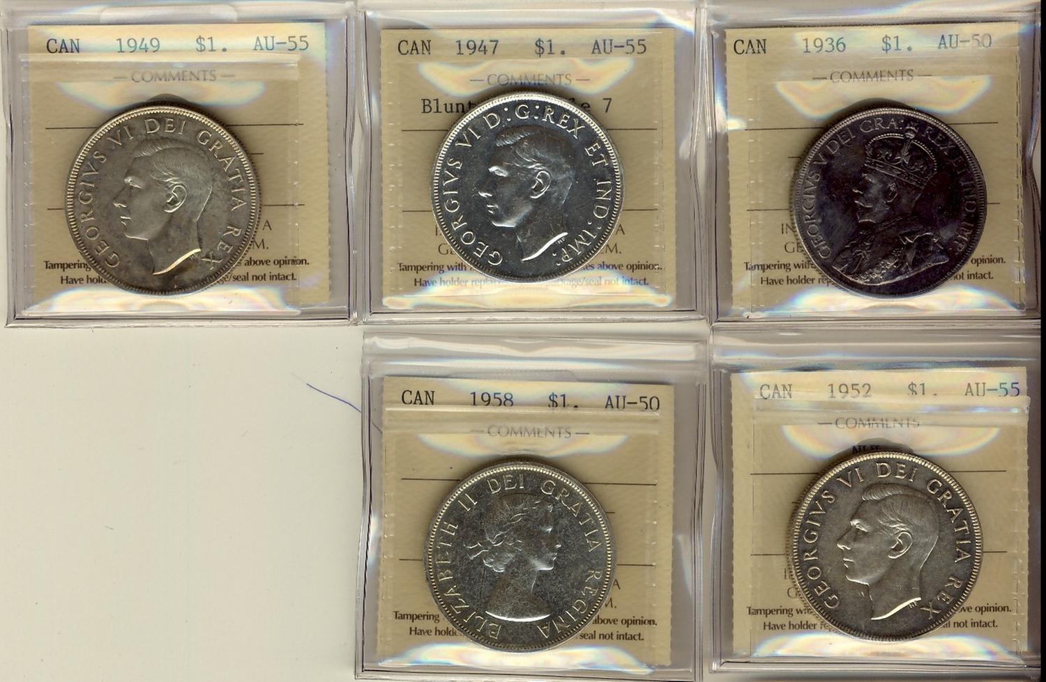 1936 $1 ICCS AU50, 1947 $1 Blunt Double7 ICCS AU55, 1949 $1 ICCS AU55, 1952 NWL $1 ICCS AU55 , 19