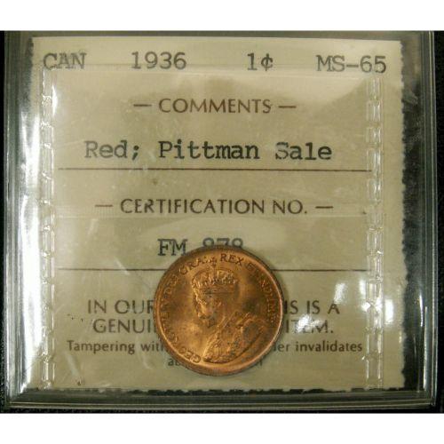 1936 1¢ ICCS MS-65 Red; Pittman Sale,