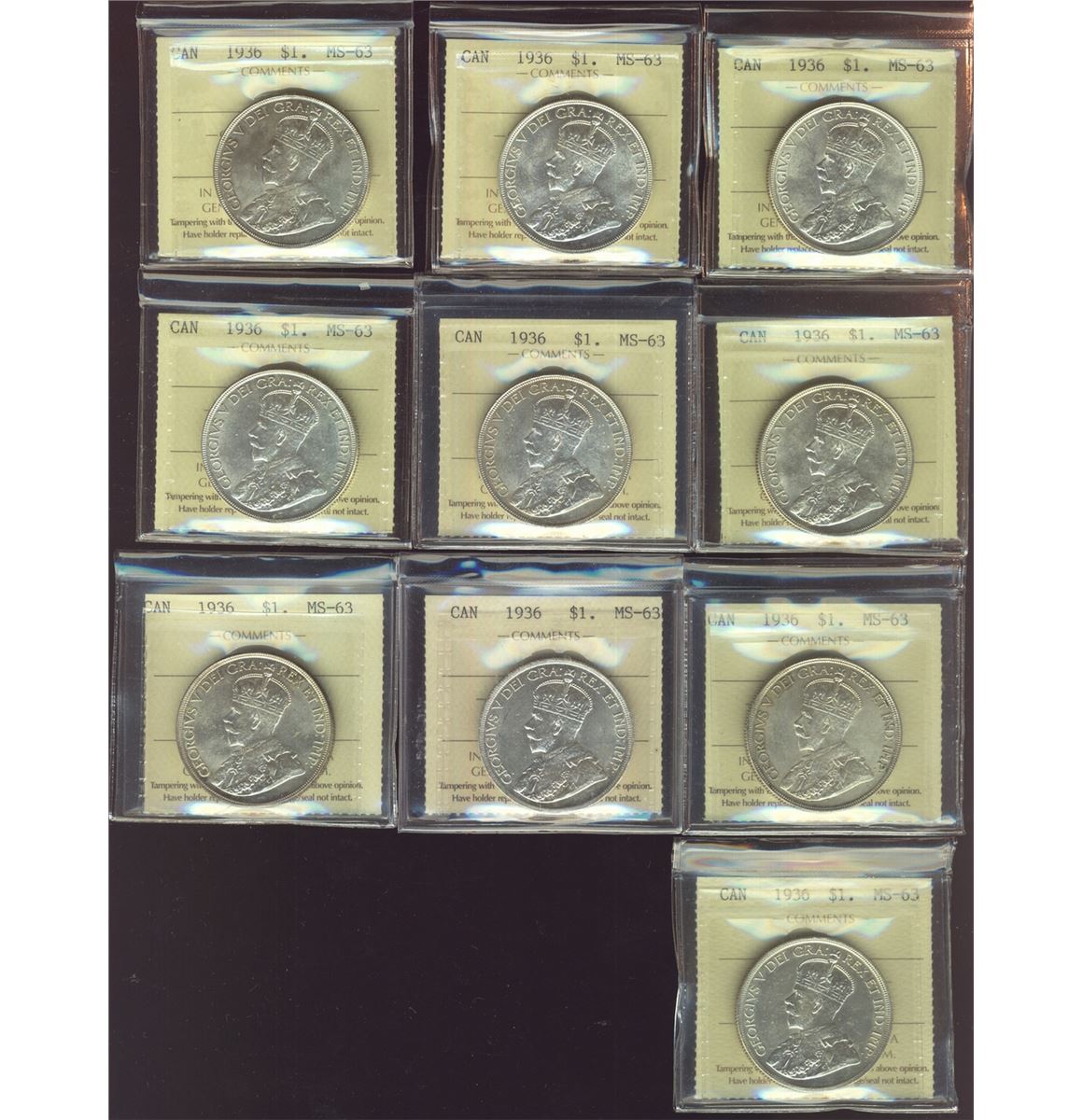 1936 $1 ICCS MS63. Lot of 10 pcs.