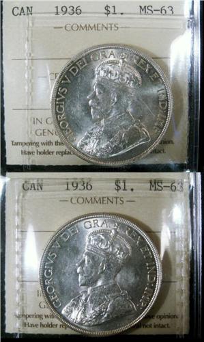 1936 $1 ICCS MS63 & MS64. Lot of two coins both shite examples.