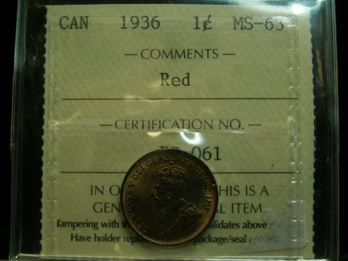 1936 1¢ ICCS MS63 Red