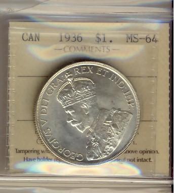 1936 $1 ICCS MS64. Blast white.