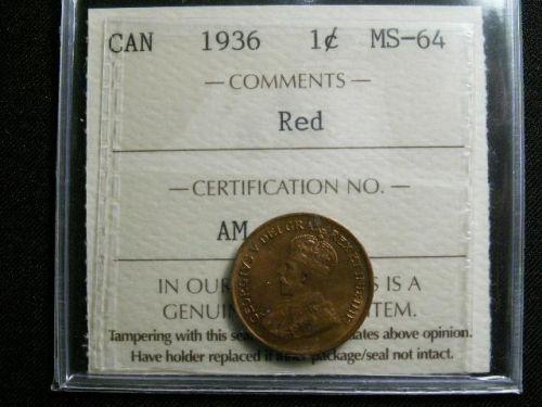 1936 1¢ ICCS MS64 Red. 80% red lustre.