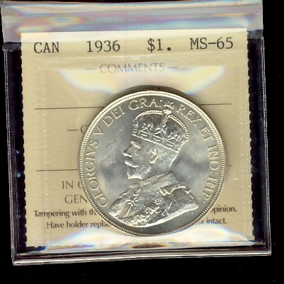 1936 $1 ICCS MS65. Brilliant and lustrous.