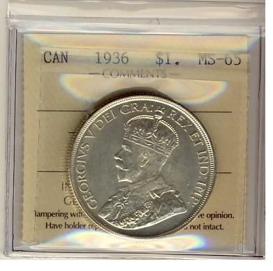 1936 $1 ICCS MS65. White with full lustre.