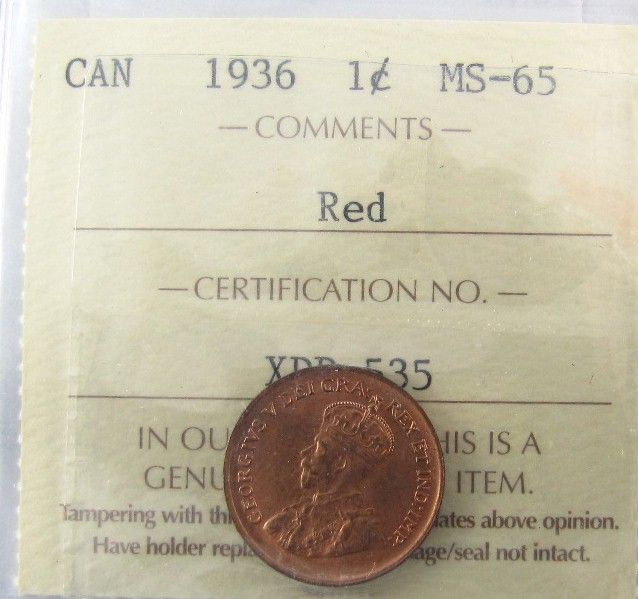 1936 1¢ ICCS MS65RD. 95% subdued red.