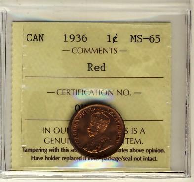 1936 1¢ ICCS MS65RD.
