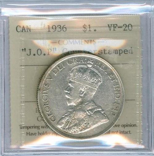 1936 $1 J.O.P. Counterstamped ICCSVF20, Popular!