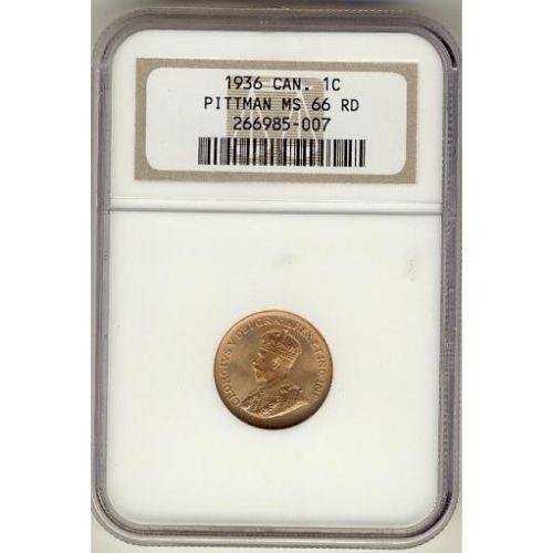 1936 1¢ NGC MS-66 Red. A superb piece with great eye appeal. From the famous 'Pittman' sale