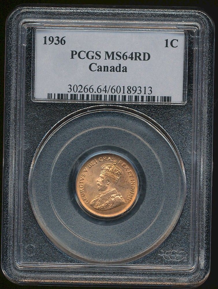 1936 1¢ PCGS MS64RD. Crisp full red issue.