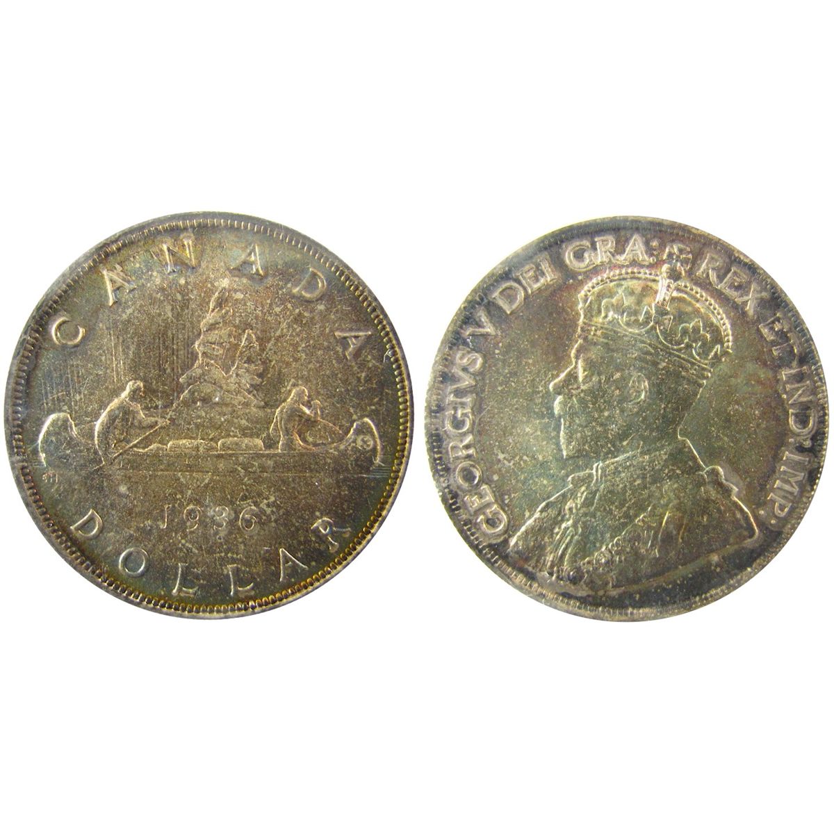 1936 $1 PCGS MS66. Rainbow tones over full underlying lustre. Scarce this nice.