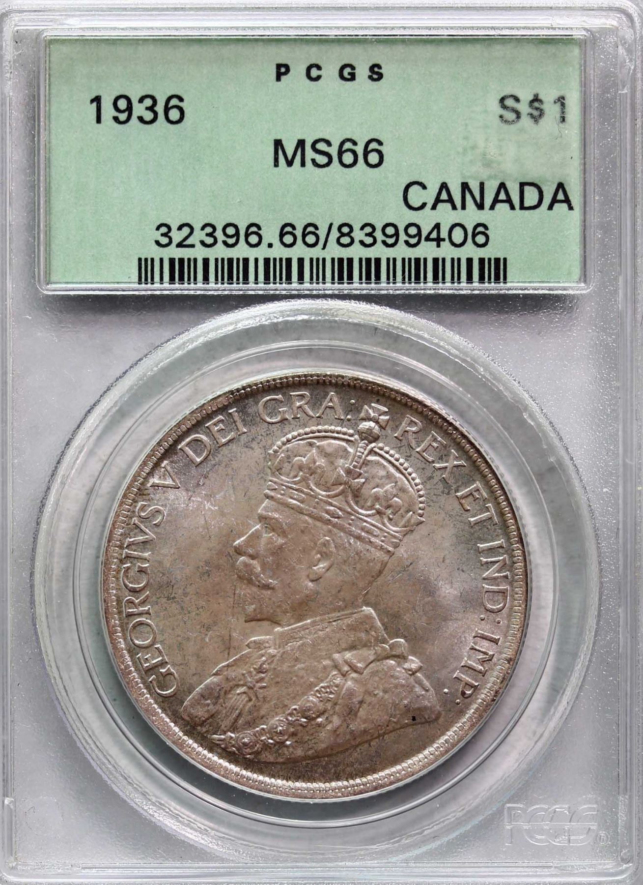 1936 $1 PCGS Superb Gem Mint State-66 Delicate pink and russet tones over full underlying lustre. Scarce this nice. Housed in Old green PCGS holder
