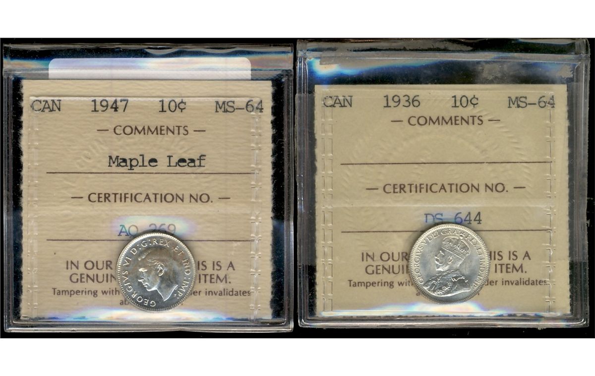 1936 10¢ & 1947ML ICCS MS64.