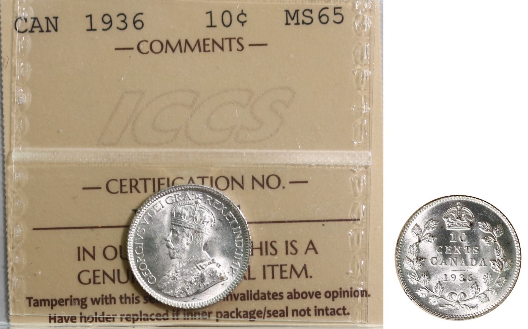 1936 10¢ ICCS Gem Mint State-65. Blast white example.