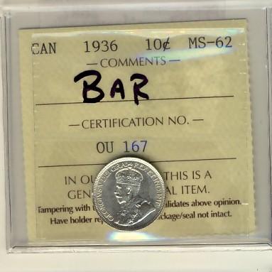 1936 10¢ ICCS MS62. A definite BAR example, however designation is not indicated.