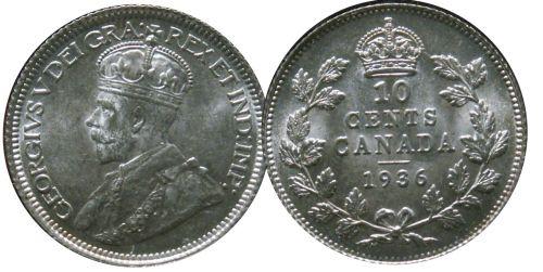 1936 10¢ ICCS MS65. Brilliant and lustrous. A sharp example.