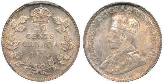 1936 10¢ PCGS MS67+. Sublime hint of greens and golds through gem lustre. A beauty.