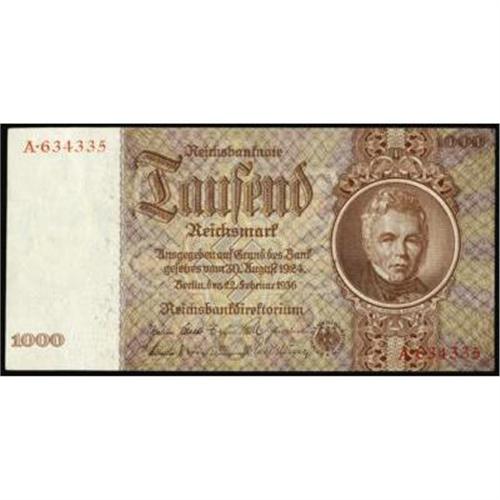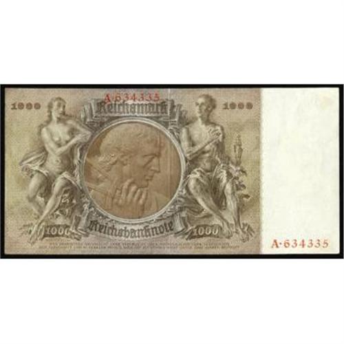 <style type="text/css"> body, td, th { font-family: Arial, Helvetica, sans-serif; font-size: 12px; color: #482424; margin: 0px; padding: 0px; } #header { background-image: url(http://www.bowersandmerena.com/ebay/images/template_v3_01.gif); clear: both; background-color: #590303; border-top-width: 2px; border-top-style: solid; border-top-color: #B38C4F; } #header #header_wrapper { height: 75px; clear: both; width: 800px; margin-right: auto; margin-left: auto; background-image: url(http://www.bowersandmerena.com/ebay/images/template_v3_03.gif); background-repeat: no-repeat; background-position: right; color: #F3EDCC; } #header #header_wrapper #header_logo { float: left; height: 75px; width: 444px; background-image: url(http://www.bowersandmerena.com/ebay/images/template_v3_02.gif); background-repeat: no-repeat; font-size: 10px; text-transform: capitalize; color: #B38C4F; } #header #header_wrapper #header_right { float: left; height: 75px; width: 356px; text-align: right; } #header #header_wrapper #header_right #headerLoginBtn { margin-bottom: 30px; } #header #header_wrapper #header_right input#txtSearch { color: #B49056; border: 1px solid #B49056; width: 175px; padding-top: 3px; padding-right: 3px; padding-bottom: 4px; padding-left: 3px; } #nav { height: 37px; background-image: url(http://www.bowersandmerena.com/ebay/images/template_v3_05.gif); clear: both; } #nav #nav_wrapper { height: 35px; width: 800px; margin-right: auto; margin-left: auto; border-left-width: 1px; border-left-style: solid; border-left-color: #B38C4F; } #nav #nav_wrapper a { padding-right: 15px; padding-left: 15px; border-right-width: 1px; border-right-style: solid; border-right-color: #B38C4F; height: 25px; padding-top: 10px; display: block; float: left; text-decoration: none; font-weight: bold; color: #5D0303; } #nav #nav_wrapper a:hover { color: #B38C4F; } #nav #nav_wrapper #search { float: right; padding-top: 7px; } #nav #nav_wrapper #search #txtSearch { font-family: Arial, Helvetica, sans-serif; font-size: 10px; text-transform: uppercase; color: #D2AE75; border: 1px solid #B38C4F; padding: 3px; } #content_bgd { background-image: url(http://www.bowersandmerena.com/ebay/images/template_v3_09.gif); background-repeat: repeat-y; background-position: center; padding-top: 15px; padding-bottom: 15px; background-color: #FBFBDB; } #content_wrapper { clear: both; height: auto; width: 800px; margin-right: auto; margin-left: auto; } .LotDetailWhite { line-height:normal; font-size:13px; font-family: arial,helvetica,sans-serif; color: White; font-weight: bold; } .LotDetailInformation { line-height:normal; font-size: 13px; font-family: arial,helvetica,sans-serif; } .LotDetailMessage { line-height:normal; font-size: 13px; font-family: arial,helvetica,sans-serif; color: red; } } tr.HeaderAuctionTitle td { color: #000000; font-weight: bold; padding: 2px; background-image: url(http://www.bowersandmerena.com/ebay/images/template_v3_05.gif); background-repeat: repeat-x; border-bottom-width: 1px; border-bottom-style: solid; border-bottom-color: #B38C4F; } table.AuctionSummary a, table.AuctionSummary a:link, table.AuctionSummary a:visited { color: #0000FF; text-decoration: none; } } td.tableHeaderLeft { border-left-width: 1px; border-left-style: solid; border-left-color: #B38C4F; } td.tableHeaderRight { border-right-width: 1px; border-right-style: solid; border-right-color: #B38C4F; } td.tableCellMiddle { border-left-width: 1px; border-left-style: solid; border-left-color: #B38C4F; border-right-width: 1px; border-right-style: solid; border-right-color: #B38C4F; padding: 5px; } tr.footer td { border-top-width: 1px; border-top-style: solid; border-top-color: #B38C4F; } </style> </head> <body> <div id="header"> <div id="header_wrapper"> <div id="header_logo"> </div> <div id="header_right"> </div> </div> </div> <div id="nav"> <div id="nav_wrapper"> <a href="http://www.bowersandmerena.com">Our eBayLive Auctions</a> <a href="#PaymentInfo">Payment Information</a> <a href="#ShippingInfo">Shipping Information</a> <a href="#About">About Bowers and Merena</a> </div> </div> <div id="content_bgd"> <div id="content_wrapper"> <table width="100%" border="0" cellpadding="5" cellspacing="0" class="AuctionSummary"> <tbody> <tr class="HeaderAuctionTitle" style="height: 25px;"> <td align="left" class="tableHeaderLeft" > </td> <td align="center" class="tableHeaderRight"> <span style="font-size: large;">Lot #2788. Germany. 1936 1000 Reichsmark. Republic Treasury Note. About Uncirculated.</span> </td> </tr> <tr> <td colspan="3" class="tableCellMiddle"> P-184. This note rounds out the series of 1929-36 Reichsmark issues and is the highest denomination. The note has no varieties and shows serial numbers on the reverse and a underprint letter on the face. Exhibiting only a single center fold this note will surely impress as the color and appeal are outstanding.