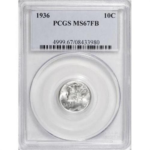 <B>1936 10C MS67 Full Bands PCGS.</B></I> PCGS Population (125/10). NGC Census: (60/2). Mintage: 87,504,128. Numismedia Wsl. Price for NGC/PCGS coin in MS67: $400. (#4999)<BR><BR><B>Coin Engraver:</B> Adolph A. Weinman<BR><BR><b>Shipping:</b> Coins & Currency (<a target="_blank" href="http://www.heritageauctions.com/common/shipping.php">view shipping information</a>\)