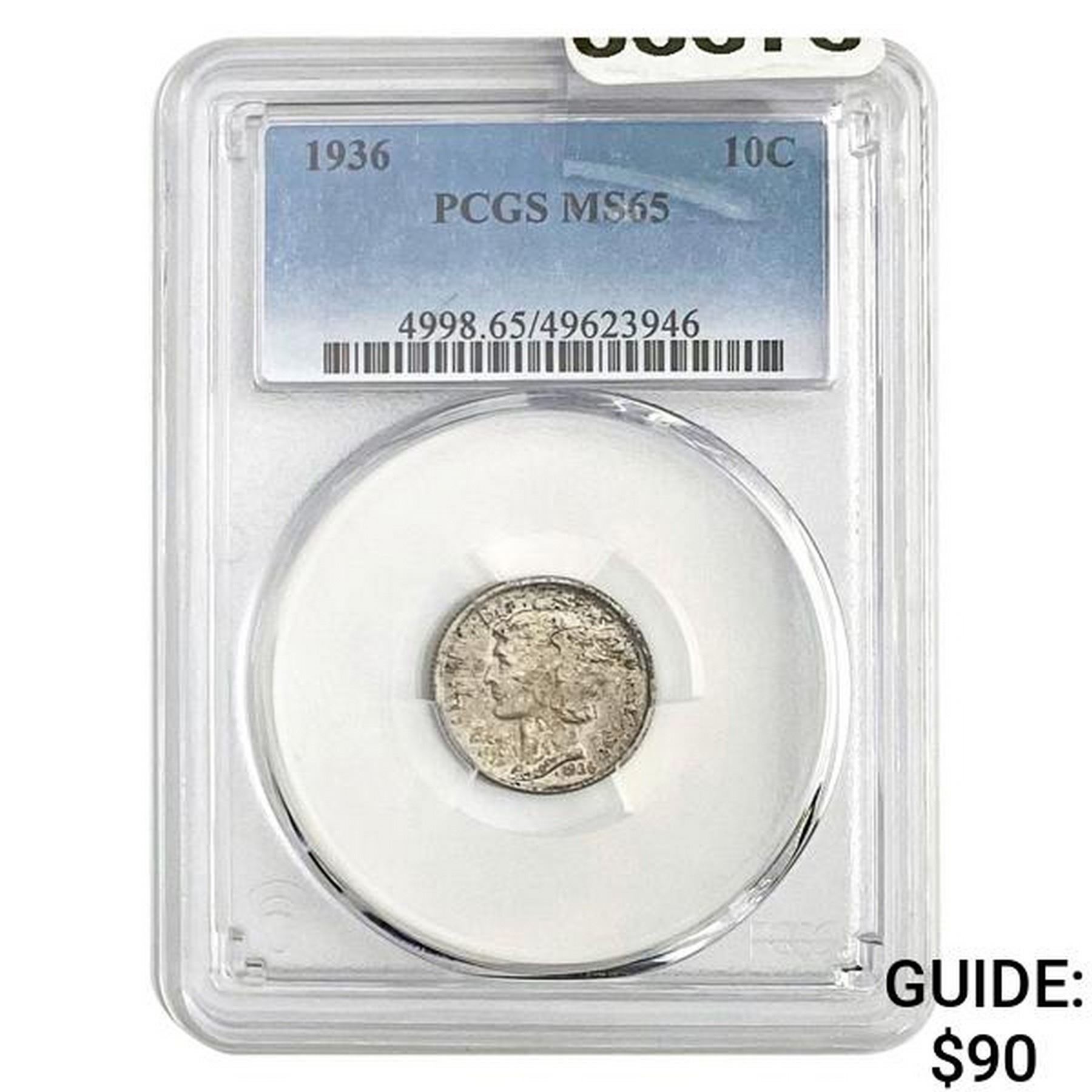 1936 10C Mercury Dime PCGS MS65