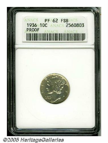 <B>1936<10C> PR62 Full Bands ANACS.</B></I> Sharply struck and well preserved, with a light coating of milky patina on each side.