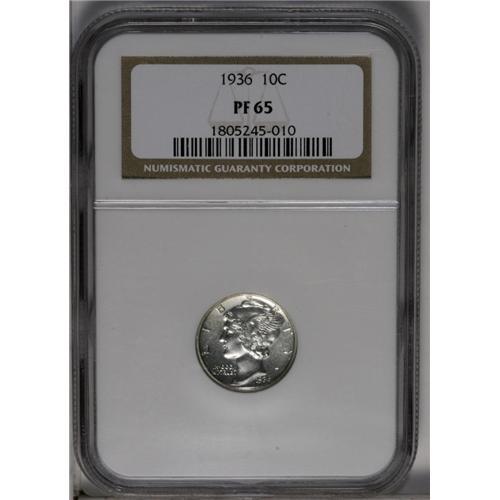 <B>1936<10C> PR65 NGC.</B></I> Crisply struck and untoned with highly reflective fields and the absence of any contact marks or hairlines. The first year of proof coinage for the immensely popular Mercury dime.