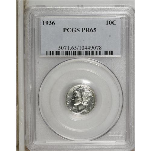 <B>1936 10C PR65 PCGS.</B></I> A brilliant and flashy piece with exemplary preservation. Liberty's wing and the fasces exhibit pleasing frost. 1936 is the rarest among the proof Mercury dates.<BR><BR><b>Shipping:</b> Coins & Currency (<a target="_blank" href="http://www.heritageauctions.com/common/shipping.php">view shipping information</a>)