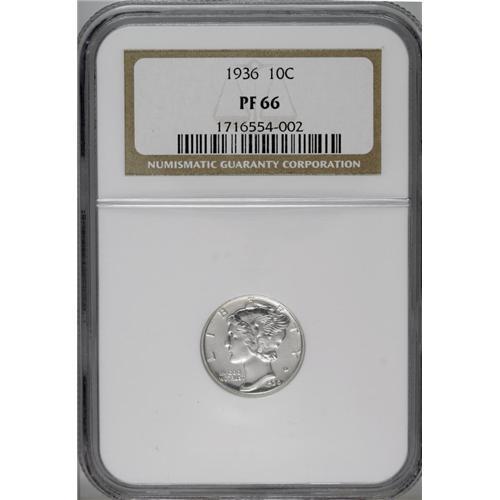 1936 10C PR66 NGC. Crisply struck and brilliant, with 1936[10C] PR66 NGC.