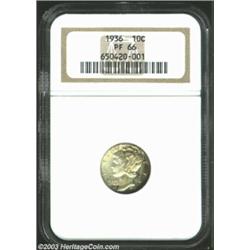 1936 10C PR66 NGC. Original surfaces, obviously toned as they are by many years residency in a cellophane holder of issue. Most of each side shows light pearl-gray patina with darker accents around the margins, especially the right side of the obverse. Sound technical quality as well. Important notice: We expect to be auctioning lots at the rate of 200-250 per hour. On occasion eBay live bid software cannot keep up with the pace of the auctions where 4-5 lots per minute can hammer down, so we recommend that you place a realistic absentee bid now as insurance to avoid disappointment. Also please note that all Heritage/CAA lots purchased through eBay Live carry a 20% Buyer's Premium. Please make sure you read the Terms and Conditions.