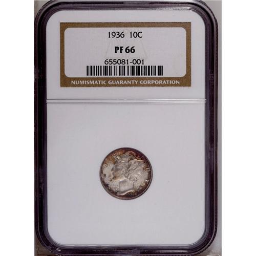 <B>1936 10C PR66 NGC.</B></I> The fields show a modicum of reflectivity beneath milky patina while the peripheral areas are covered in appealing russet and crimson toning.