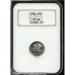 <B>1936<10C> PR66 NGC.</B></I> A light dusting of mottled golden-russet and tan-brown patina confirms the originality of this pleasant Gem. We cannot find any blemishes of note as one would expect for a coin at the PR66 grade level. The mirrored finish is readily evident as the surfaces rotate under the light. <BR><BR><B>Important notice:</B> Heritage usually auctions material at the rate of 200-250 lots per hour. On some occasions eBay Live bid software or the Internet may not be able to keep up with the pace of the auction. We recommend placing a realistic absentee bid now as insurance to avoid disappointment. Occasionally the auctioneer may eliminate or reject an eBay Live bid, and the auctioneer may also reopen a lot after the close of the eBay live bidding (usually because we missed an audience bid), and may reject your bid even if it shows you as the winning bidder. By bidding via eBay Live, you agree that Heritage may award the lot to another bidder at its sole discretion under the circumstances described above or any other reasonable circumstances. Since eBay bids are not shown to us until we open the lot on the floor, we treat those bids just like floor bids. In most cases the floor responds before the eBay bid is presented to us, due to Internet lag time, so for consistency we have made it a policy that floor bids are always considered first over tie eBay live bids. Also please note that all Heritage lots purchased through eBay Live carry a 20% Buyer's Premium. Please make sure you read the Terms and Conditions before you bid.