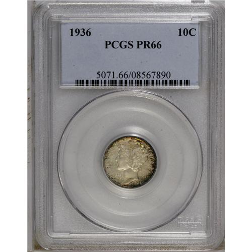 1936 10C PR66 PCGS. Moderate mirrors shine beneath the