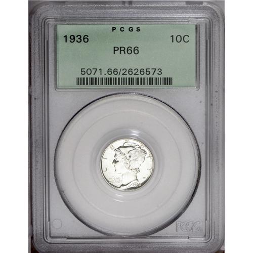 <B>1936<10C> PR66 PCGS.</B></I> This exquisitely struck and carefully preserved first year proof Premium Gem is virtually brilliant and displays attractive frost on the fasces and branches. In a green label holder.