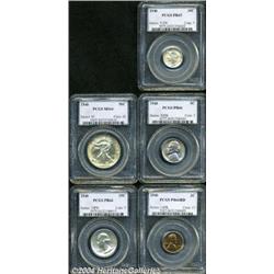 <B>1936<10C> PR66 PCGS.</B></I> First year of issue for modern proofs and the key issue in the series with a mintage of only 4,130 pieces. This is a beautifully preserved, uncleaned specimen that is slightly toned over both sides by streaky <BR><BR><B>Important notice:</B> Heritage usually auctions material at the rate of 200-250 lots per hour. On some occasions eBay Live bid software or the Internet may not be able to keep up with the pace of the auction. We recommend placing a realistic absentee bid now as insurance to avoid disappointment. Occasionally the auctioneer may eliminate or reject an eBay Live bid, and the auctioneer may also reopen a lot after the close of the eBay live bidding (usually because we missed an audience bid), and may reject your bid even if it shows you as the winning bidder. By bidding via eBay Live, you agree that Heritage may award the lot to another bidder at its sole discretion under the circumstances described above or any other reasonable circumstances. Since eBay bids are not shown to us until we open the lot on the floor, we treat those bids just like floor bids. In most cases the floor responds before the eBay bid is presented to us, due to Internet lag time, so for consistency we have made it a policy that floor bids are always considered first over tie eBay live bids. Also please note that all Heritage lots purchased through eBay Live carry a 20% Buyer's Premium. Please make sure you read the Terms and Conditions before you bid. </span></font></tr></table></td></tr></table>