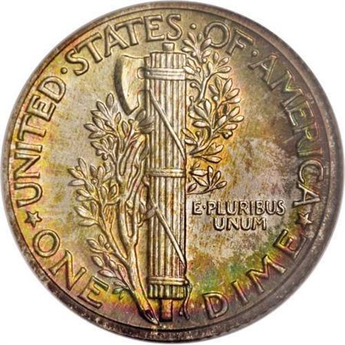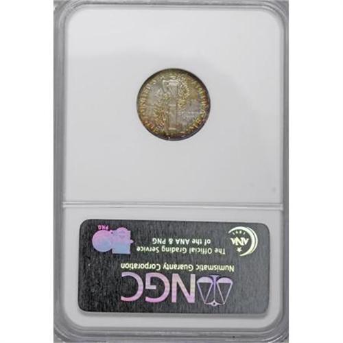 <B>1936 10C PR67 NGC.</B></I> This Superb Gem proof is an exquisite specimen with glorious rainbow toning on each side, especially concentrated close to the borders. Every intricate detail of the dies is boldly defined. At this grade, it ranks nearly at the top of the population charts. Census: 72 in 67, 1 finer (10/07).<BR><BR><B>Coin Engraver:</B> Adolph A. Weinman<BR><BR><b>Shipping:</b> Coins & Currency (<a target="_blank" href="http://www.heritageauctions.com/common/shipping.php">view shipping information</a>)