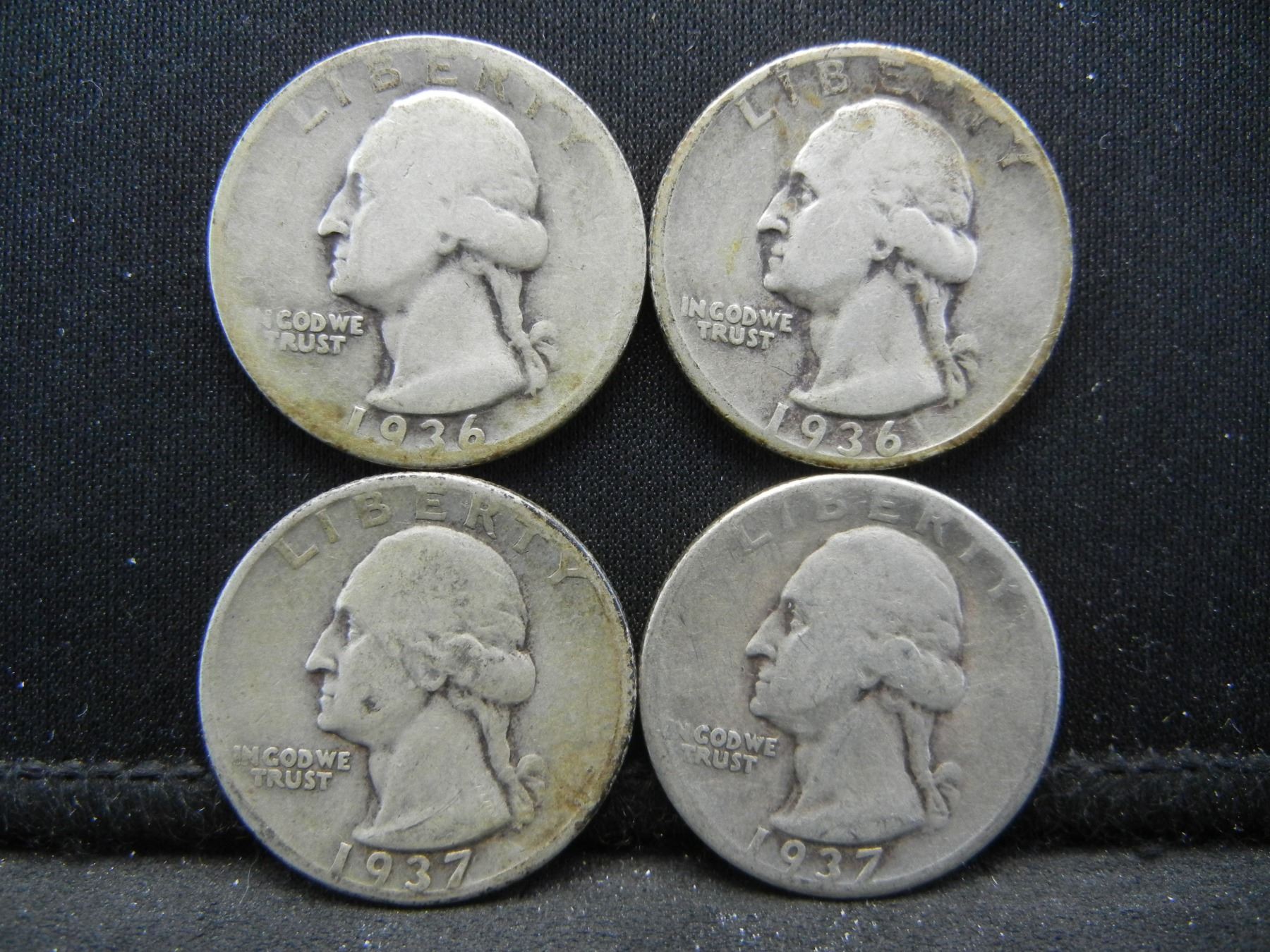 1936, 1936-S, 1937, and 1937 Washington 25c.