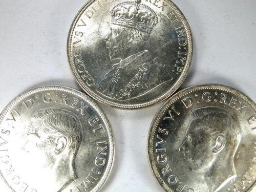 Canada Silver Dollar 1936, 1937 and 1938. Three pale toned pieces, all Uncirculated