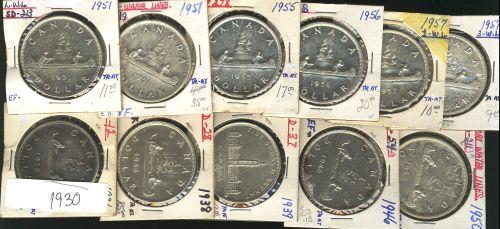 1936, 1938, 1939, 1946, 1950 SWL, 1951, 1951 SWL, 1955, 1956, 1957 1 WL, 1957. Lot of 11 pieces. Grades are EF-40 or better.