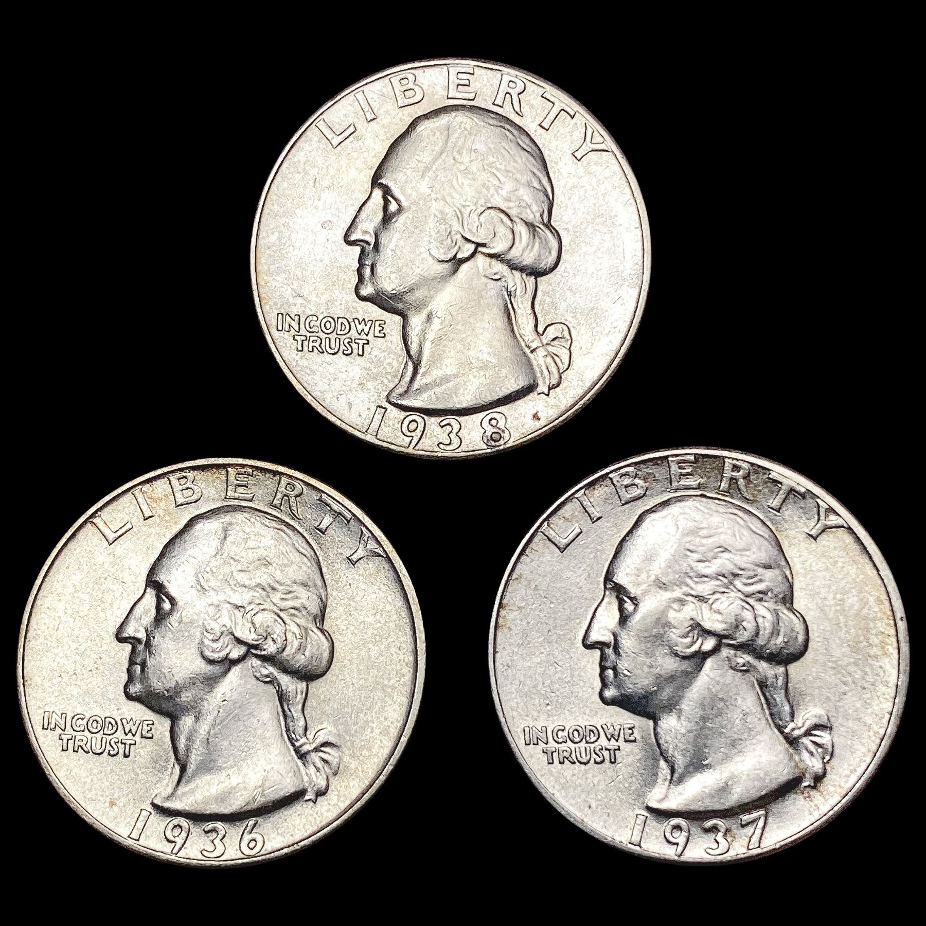 1936-1938 Varied Date Washington Quarters [3 Coins