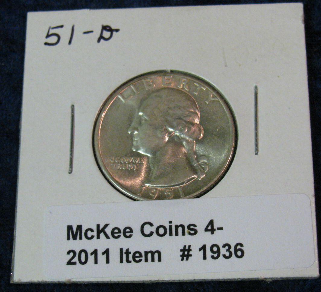 1936. 1951 D Washington Quarter. Brilliant Unc.