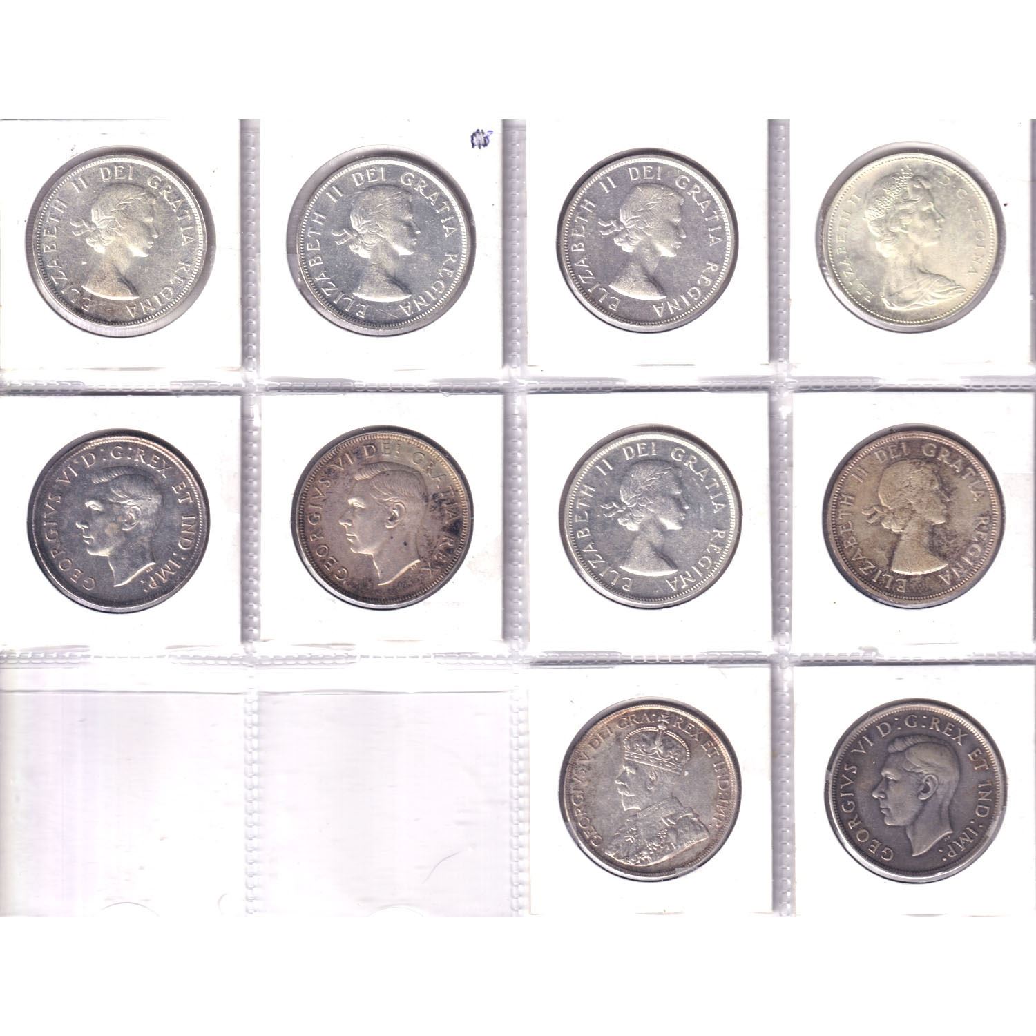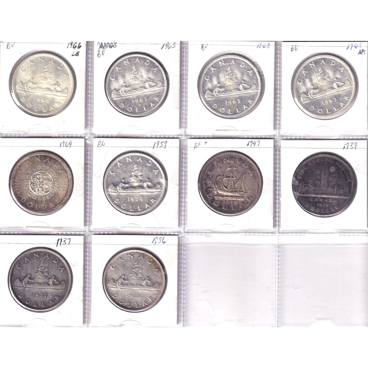 1936-1966 Canada Silver Dollars. You will receive 10 coins dated between 1936 and 1966. view image for details.
