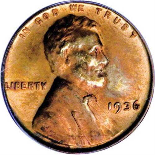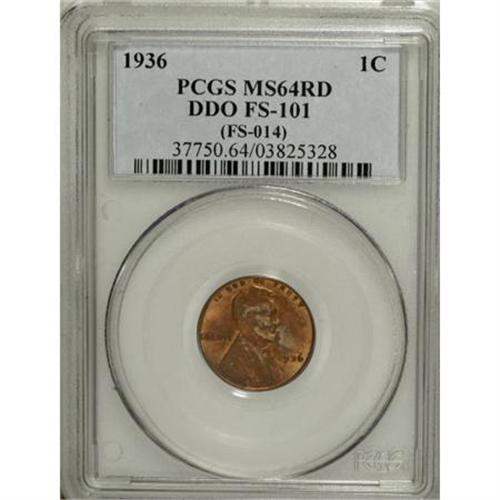 <B>1936 1C Doubled Die Obverse Type One MS64 Red PCGS. CAC.</B></I> FS-101, formerly FS-014. Three different doubled die varieties have been identified for the 1936 cent, and this is the sharpest of the three, commanding substantial premiums. Lovely orange-gold surfaces display splashes of steel-green, and are well struck, including complete separation of the lines in the wheat stalks. Kept from Gem status by a few minor ticks. Population: 3 in 64 Red, 10 finer (10/07).<BR><BR><b>Shipping:</b> Coins & Currency (<a target="_blank" href="http://www.heritageauctions.com/common/shipping.php">view shipping information</a>)