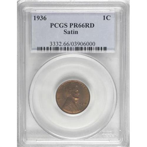<B>1936 1C Type One--Satin Finish PR66 Red PCGS.</B></I> The rich orange-red surfaces show slight hints of yellow-green and magenta on this scarce Type One cent. Minuscule flyspecks can also be seen under a loupe. Although more examples of the Satin Finish were struck, it appears that more examples were mishandled than of the Type Two coins that followed. Population: 24 in 66, 1 finer (8/07).<BR><BR><B>Coin Engraver:</B> Victor D. Brenner<BR><BR><b>Shipping:</b> Coins & Currency (<a target="_blank" href="http://www.heritageauctions.com/common/shipping.php">view shipping information</a>)