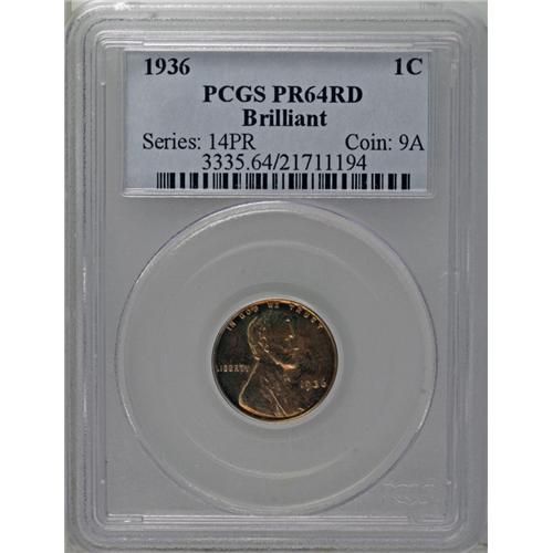 1936 1C Type Two--Brilliant Finish PR64 Red PCGS. Slig