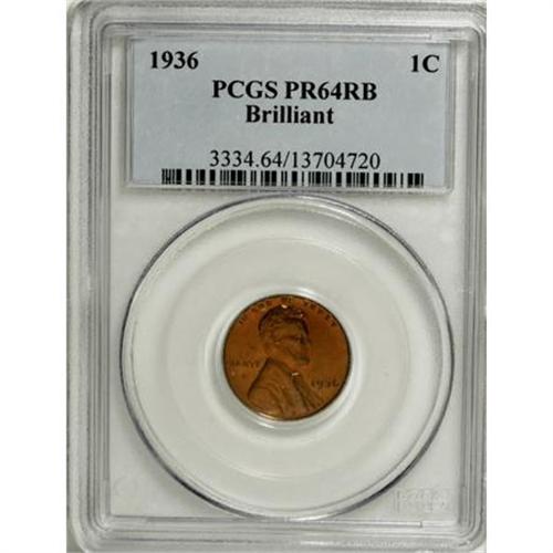<B>1936 1C Type Two--Brilliant Finish PR64 Red and Brown PCGS.</B></I> The obverse is primarily orange-gold, while the reverse is apricot with olive tints. Unimportant carbon is present, but nonetheless close to full red. Well struck and lovely.<BR><BR><B>Coin Engraver:</B> Victor D. Brenner<BR><BR><b>Shipping:</b> Coins & Currency (<a target="_blank" href="http://www.heritageauctions.com/common/shipping.php">view shipping information</a>)