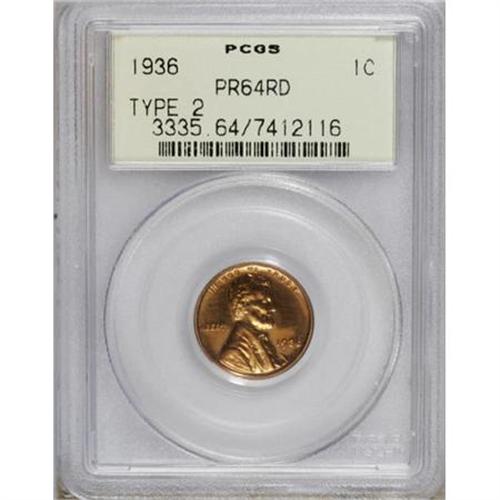 <B>1936 1C Type Two--Brilliant Finish PR64 Red PCGS.</B></I> The surfaces are brilliant orange-red, with bold mirrors and only a few trivial carbon flecks that appear under a loupe. Certified in a green-label holder.<BR><BR><B>Coin Engraver:</B> Victor D. Brenner<BR><BR><b>Shipping:</b> Coins & Currency (<a target="_blank" href="http://www.heritageauctions.com/common/shipping.php">view shipping information</a>)